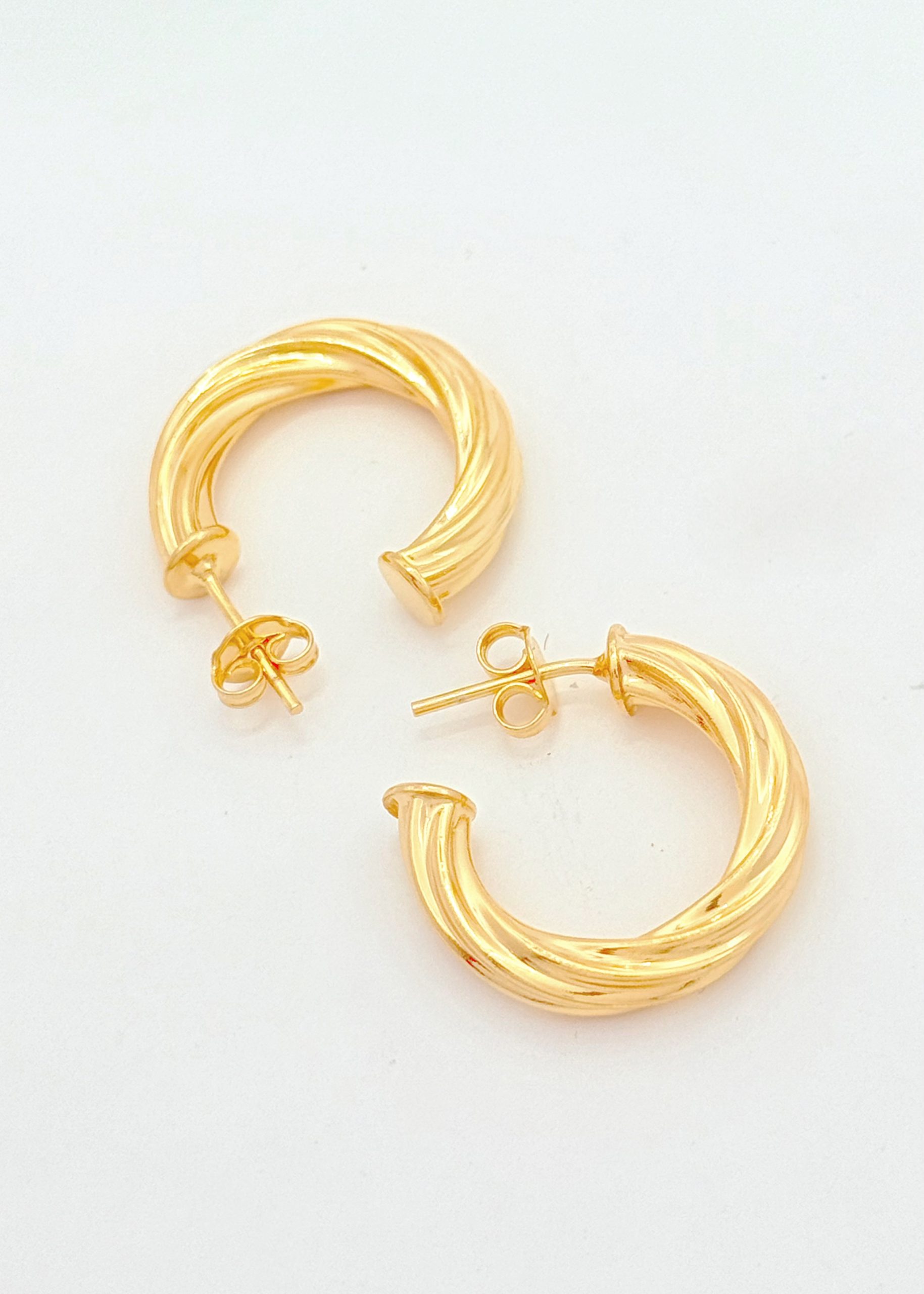 Aros chapados en oro de 22 quilates con una base de materiales nobles e hipoalergénicos. Ligeros y elegantes, con un diámetro de 2cm.